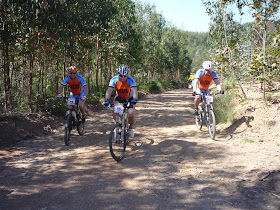 Quando nós chegamos já lá estavam a Dora, a Paula e o Daniel.Grupo reunido e começámos a volta. Fomos em direcção à Apostiça, descendo a antiga estrada de Sesimbra passando pelo heliporto.Seguimos pelo mesmo estradão até à Fonte da Telha, onde o Leandro amuou, porque eram só "subidas", o Daniel quando não conseguia voltava atrás e fazia novamente tudo o que era para subir.