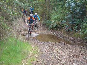 Ainda não tínhamos recomeçado a pedalar, já estávamos a prolongar a nossa paragem, desta vez devido a um furo. Foi a bike do Papa Trilho Tony. Continuámos o nosso passeio pela serra dentro e a melhor parte do percurso estava prometida para o final. Numa descida de perícia, iniciámos o trilho da Amazónia. A beleza rivaliza com os últimos Kms do Alvalade-Porto Covo, mas num trilho mais largo, menos técnico, muito agradável e com inúmeras passagens de água que garantem os pés molhados. Foi o ponto alto do nosso passeio, com decisão unânime!