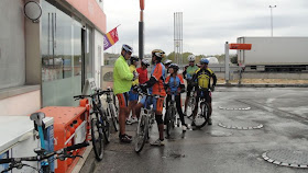 Chegados ao 1º patamar, até às antenas continuava a subir. Depois de todos lá em cima, aproveitámos para abastecer, recuperar o fôlego e reparar um furo. A premiada foi a bike da Bela San. Elegemos também este local para a nossa foto de grupo.