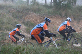 Na Comenda é hora de pausa, para meter água e ingerir algumas barritas. Como não podemos arrefecer, partimos em direcção às traseiras da Sécil. Ora aqui, o primeiro grande obstáculo, muita lama, (mais um teste), quase, quase que conseguia passar sem meter o pé no chão. Lembrei-me de um mocinho que temos no grupo com sapatinho branco.