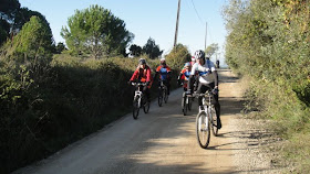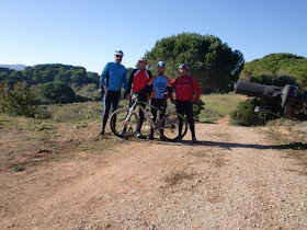 Mas tivemos mais fotos... o Lapa com o seu telemóvel também contribuiu para o nosso álbum de Natal. Continuando viagem, depois do Alto das Necessidades, pedalámos todo o estradão do Vale de Barris até Palmela onde fizemos o 1º mini abastecimento. Dizia o Riky que teríamos direito a ver um desfile de carros antigos, mas os ditos estavam kitados e já tinham passado a grande velocidez, antecipando a hora da nossa chegada.