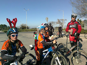 Estávamos no último fim de semana antes do Natal e o desafio era efectuar um passeio onde os participantes eram convidados a trazer um qualquer adereço de Natal. E assim foi, no sitio habitual, à hora combinada, lá foram aparecendo alguns madrugadores domingueiros com os devidos efeitos.
