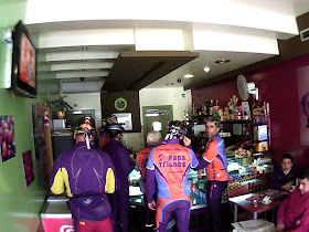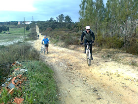 Depois dos cumprimentos, beijinhos e outros adereços de bons dias, fizemos-nos à estrada e seguimos para Azeitão. Fomos surpreendidos por algo estranho... passagem em frente às golosas tortas e sem paragem!!! Estes Papa Trilhos já não são o que eram... mas as pedaladas, essas, melhoram de semana para semana.