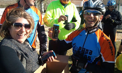 Os comentários foram favoráveis, e os Papa Trilhos aprovaram por unanimidade a dita bebida. Tirámos a foto de grupo já com as forças repostas e tudo com uma vontade anormal de pedalar... eu que fui o unico que não bebi, comecei a ver a coisa preta...