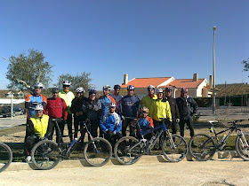 Os comentários foram favoráveis, e os Papa Trilhos aprovaram por unanimidade a dita bebida. Tirámos a foto de grupo já com as forças repostas e tudo com uma vontade anormal de pedalar... eu que fui o unico que não bebi, comecei a ver a coisa preta...