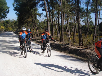 uma vinha e descemos o estradão do Vale do Paraíso em direcção a estrada de alcatrão dos Picheleiros. Entrámos no famoso caminho até à Comenda onde o tráfego de bicicletas fazia