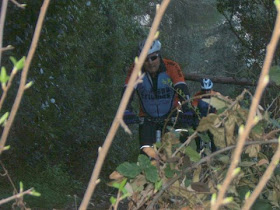 Lá seguimos pelo estradão para o lado de Palmela, mas assim que apanhámos alcatrão novo subimos para fazer um trilho um bocado técnico onde saímos por detrás da antiga casa de bikes do Vale de Barris. Como o pessoal estava com força nas pernas, fizemos mais uma leve subida, uma descida e mais umas subidas, para o lado do posto de vigia e no cruzamento esperámos para reagrupar onde o casal Mimosa demorou um bocado - passado um tempo o Mimosa apareceu a dizer que a Gina tinha sentido mal,por causa da banana!!!!!!!!!