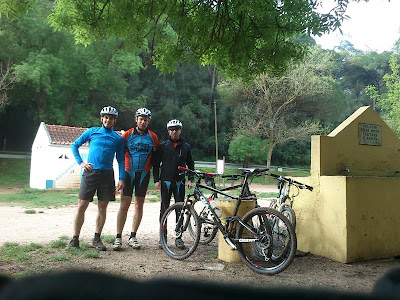 08:35h, saí de casa em direção às Bombas da Galp. Cheguei às Bombas Galp e não estava ninguém. Passados uns instantes aparece o Zé Luís e o seu primo Ricardo. 09:50h e nada de aparecer o grupo - Será que estão com medo da chuva? Após vários telefonemas, para saber o que se passava, o Félix que devia estar a dormir, “pedimos desculpa”, informou-nos que o horário do encontro tinha sido alterado para as 08:00h no Parque das Lagoas e 08:20h nas Bombas da Galp da Quinta do Conde.
