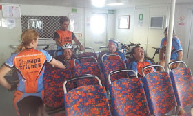 Estávamos em vésperas de 2ª feira e com um belo dia para irmos participar na maior festa do ciclismo nacional, a chegada da Volta a Portugal, em Lisboa. Mas o programa não se limitava à chegada dos ciclistas, também havia outras animações e pontos de interesse. Fazia parte do programa um Passeio de cicloturismo - Passeio da Volta, no qual haviam-se inscrito 7 Papa Trilhos: Rikybike, Isabel, Paulo Alex, Marlene, Dora, Felix e Helena. Decidiu-se irmos até Lisboa de bike a partir de Fernão Ferro. Apanhamos o barco da Transtejo que não colocou qualquer dificuldade no limite de transporte das bicicletas no barco (recordo que na carreira do Seixal, o limite é de 3).