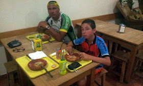 Desta vez ninguém nos apanhou comemos uma valente fatia de pizza os três parecia que o Jorge estava esfomeado, depois da fatia comemos um pão com chouriço e a seguir seguimos em frente. De seguida entramos na Cruz de Pau e por fim viemos para casa através da Apostiça.